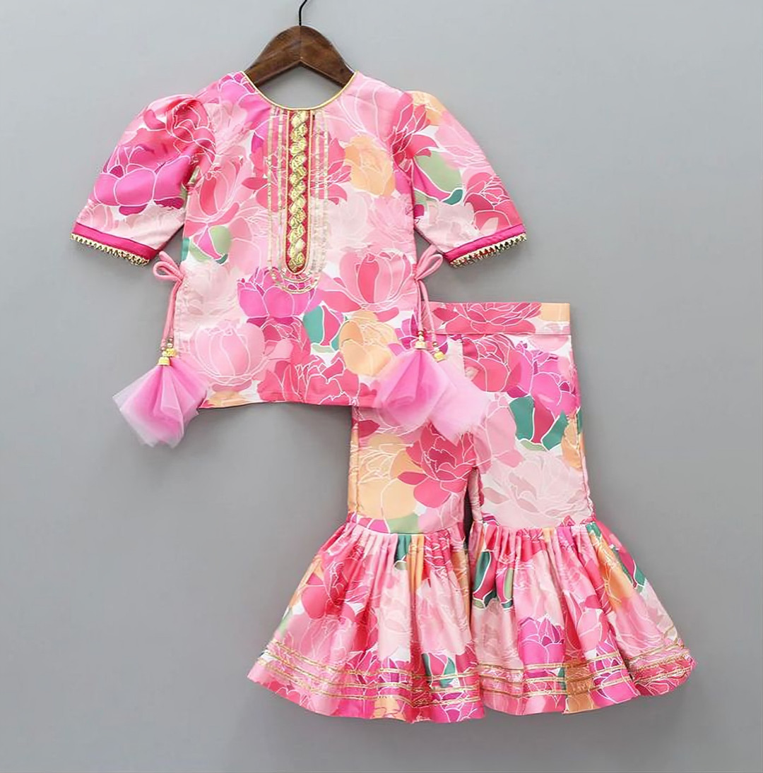 Petal Magic Frock & Bell Bottom Set for Girls – Floral Festive Wear